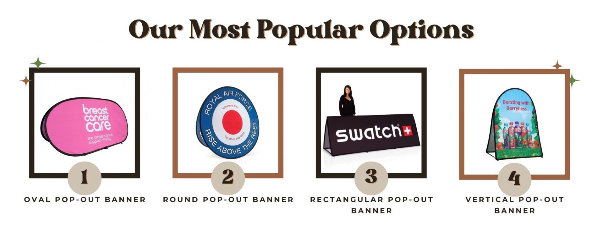 Here’s a quick guide to the most popular pop-out banner types — and when each one makes the most sense.